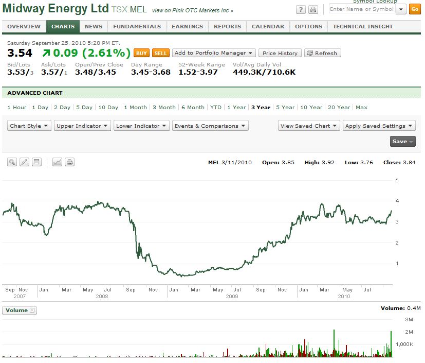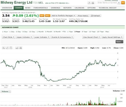 One day on an airplane on the way to Barbados, I met A. Zoic, an experienced entrepreneur, who explained “dilution” to me:  He said, “The number of shares are increased, but the size of the company also increases.  So you have smaller percentage of the whole, but the company is much larger.” Zoic’s words came back to me, the inexperienced investor, time and time again as I watched Midway Energy, my largest holding, take on more and more new shares; and Zoic’s advice helped me over the last couple of years to understand that when a junior oil raises money in a public offering that that is a really good thing because it increases the overall size of the company.  This has the added benefit of increasing the average volume of shares traded which in turn makes all shares more liquid.  A great CEO with an established reputation, like Midway Energy’s Scott Ratushny, has been able to raise the investment dollars to create the momentum that makes a good value into a great investment.