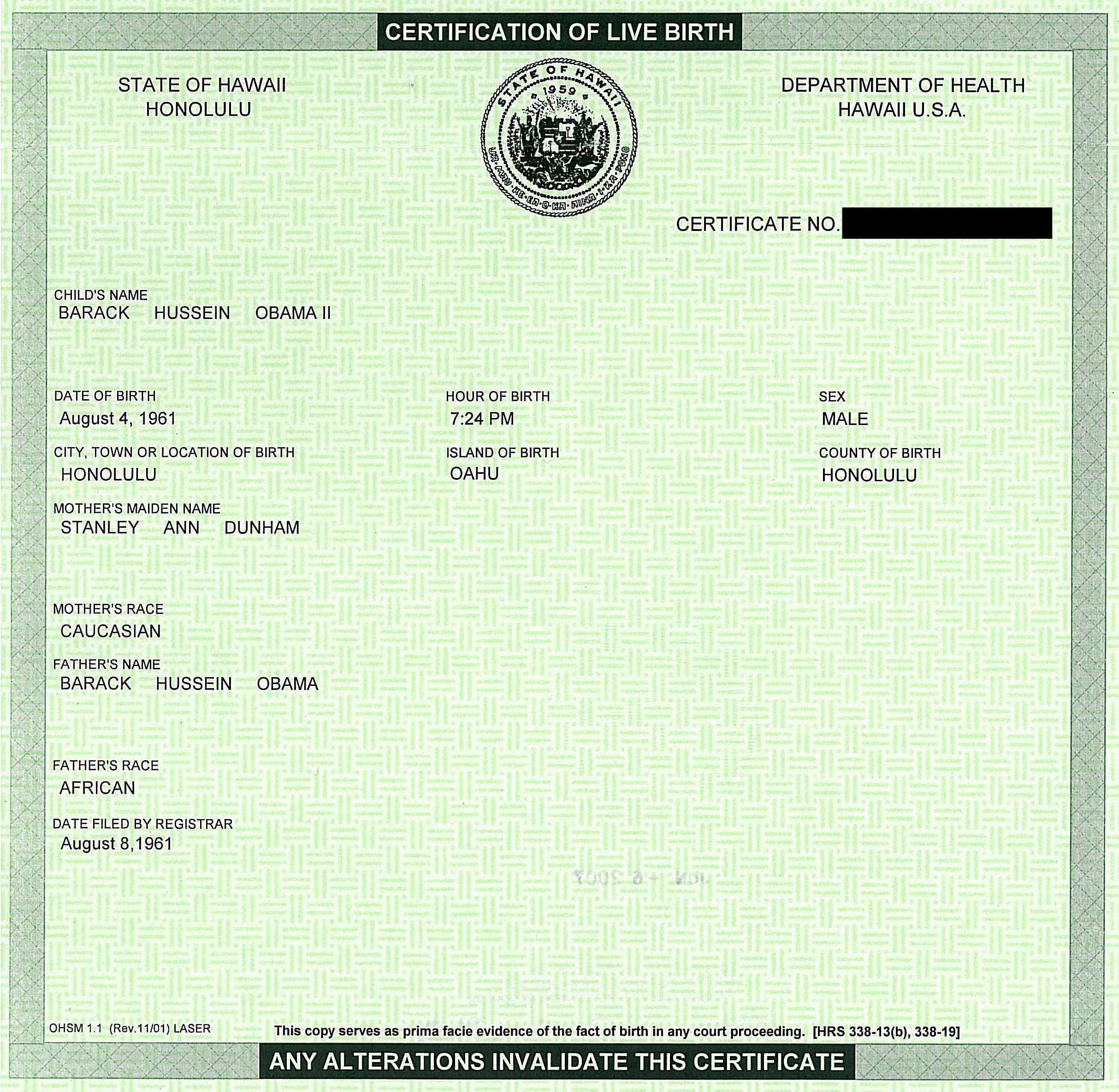 Before the election in November 2008, a pro-Obama website published a Certificate of Live Birth.  Here is that an alleged copy of that document that the Daily Kos had published: