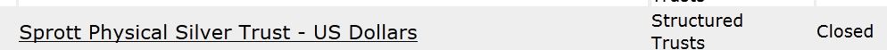 SOURCE: Sprott Physical Silver Trust